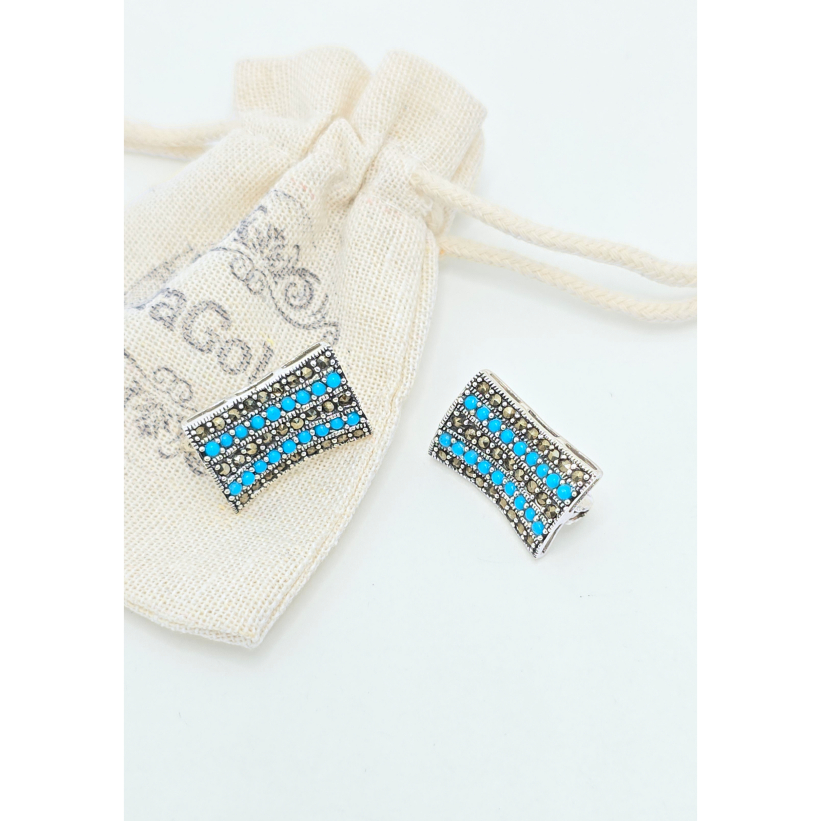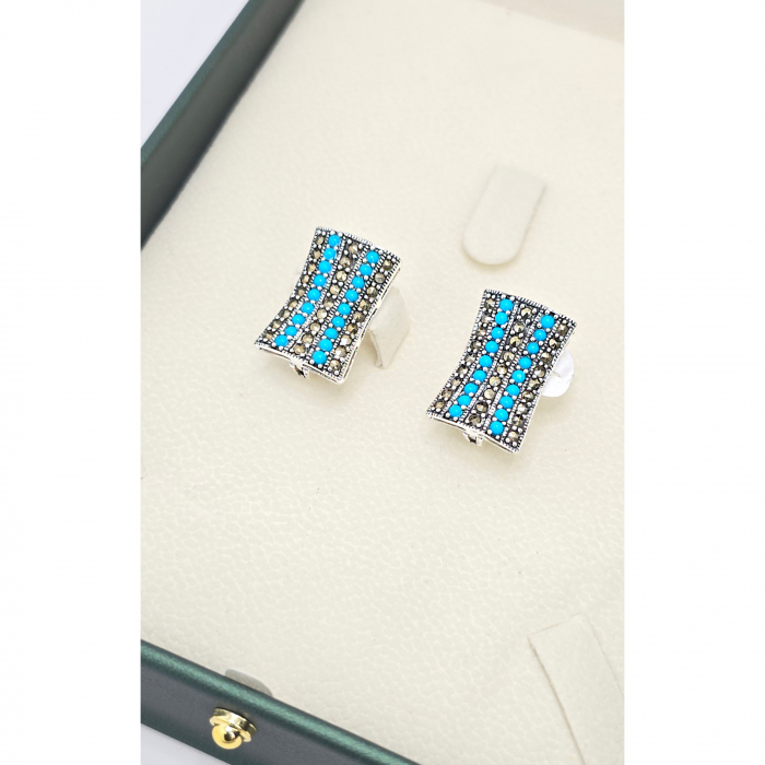 Acești cercei din argint 925 sunt decorați cu pietre semiprețioase marcasite și cristale zirconia, oferind un design rafinat și sofisticat, ideal pentru ocazii speciale.