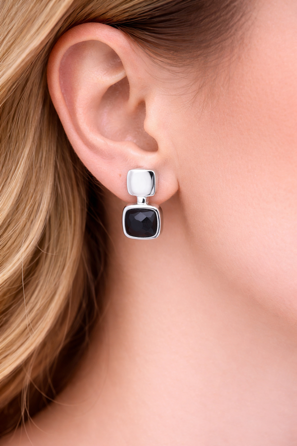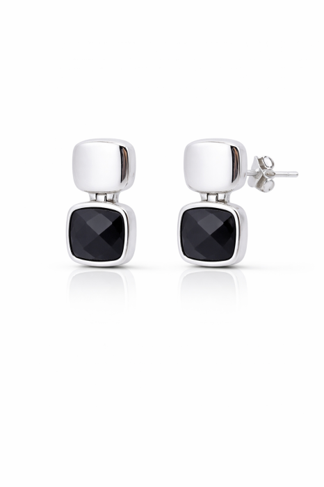 Acești cercei din argint 925 sunt decorați cu o piatră neagră, oferind un design clasic și sofisticat, ideal pentru a adăuga un strop de eleganță și mister oricărei ținute.