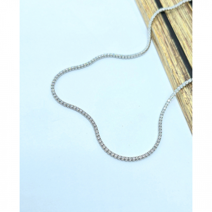 Acest colier tenis din argint 925 este decorat cu cristale zirconia transparente, oferind un aspect rafinat și strălucitor. Este ideal pentru a adăuga un strop de eleganță oricărei ținute, fie că este vorba de un eveniment special sau de purtarea zilnică.