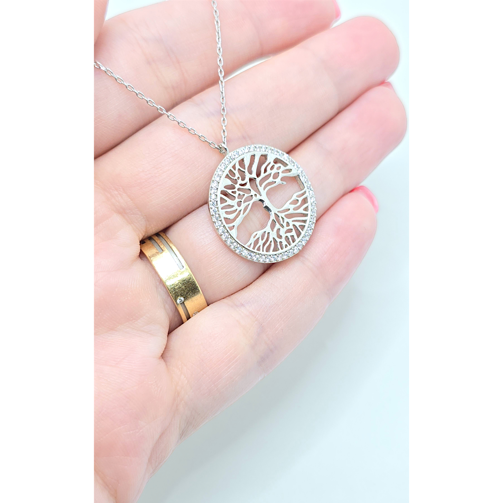 Acest lanț din argint 925 este decorat cu un medalion în formă de Copacul Vieții, simbolizând legătura dintre viață și natură, împodobit cu cristale zirconia transparente. Este un accesoriu perfect pentru a adăuga un strop de semnificație și eleganță oricărei ținute.