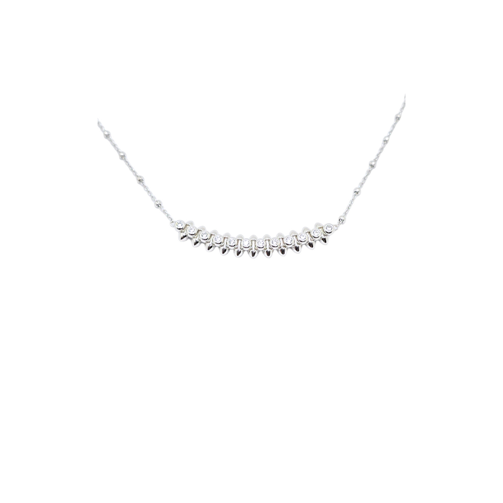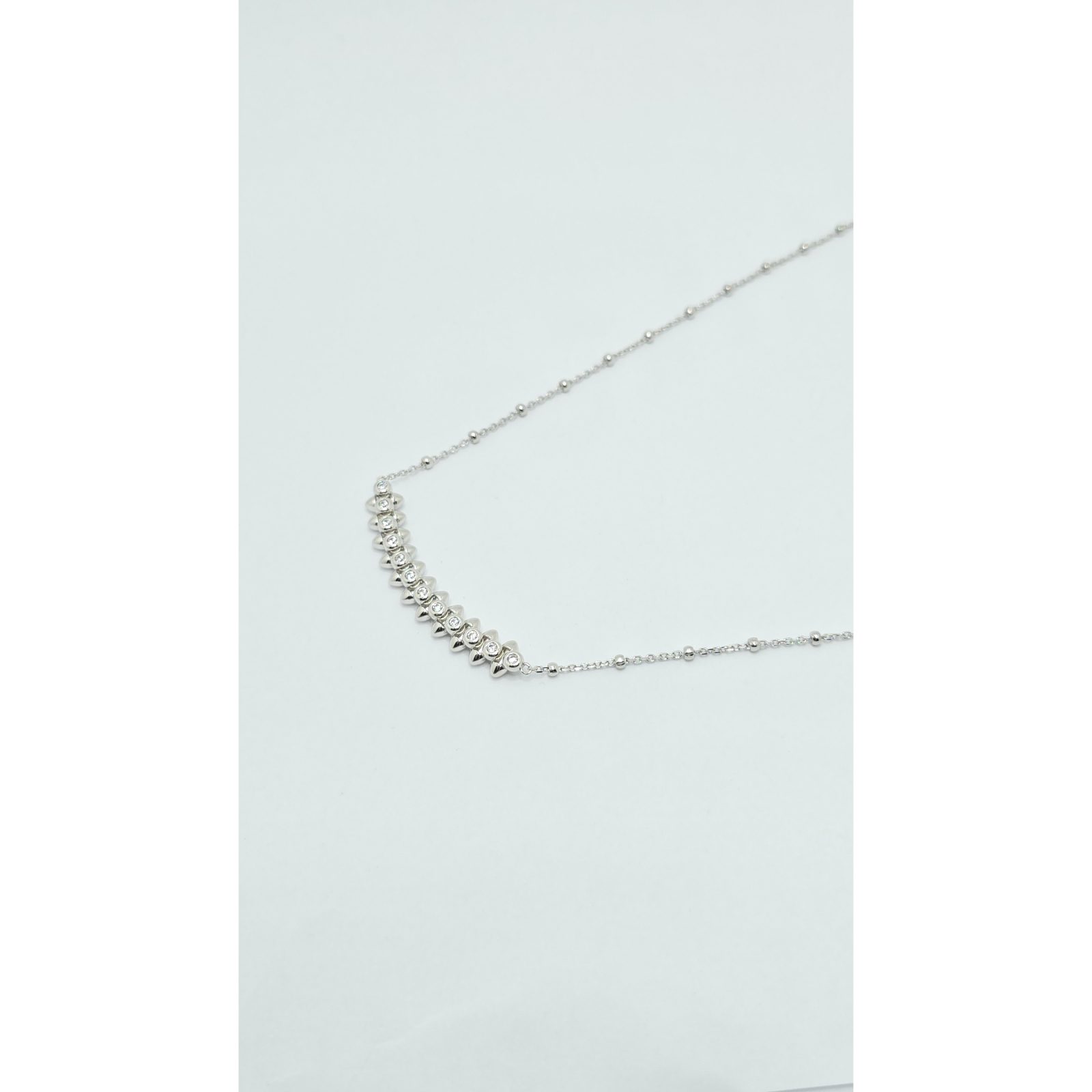 Acest lanț din argint 925 este decorat cu cristale zirconia, oferind un aspect rafinat și sofisticat, perfect pentru a adăuga un strop de eleganță oricărei ținute, fie că este vorba de un eveniment special sau de purtarea zilnică.