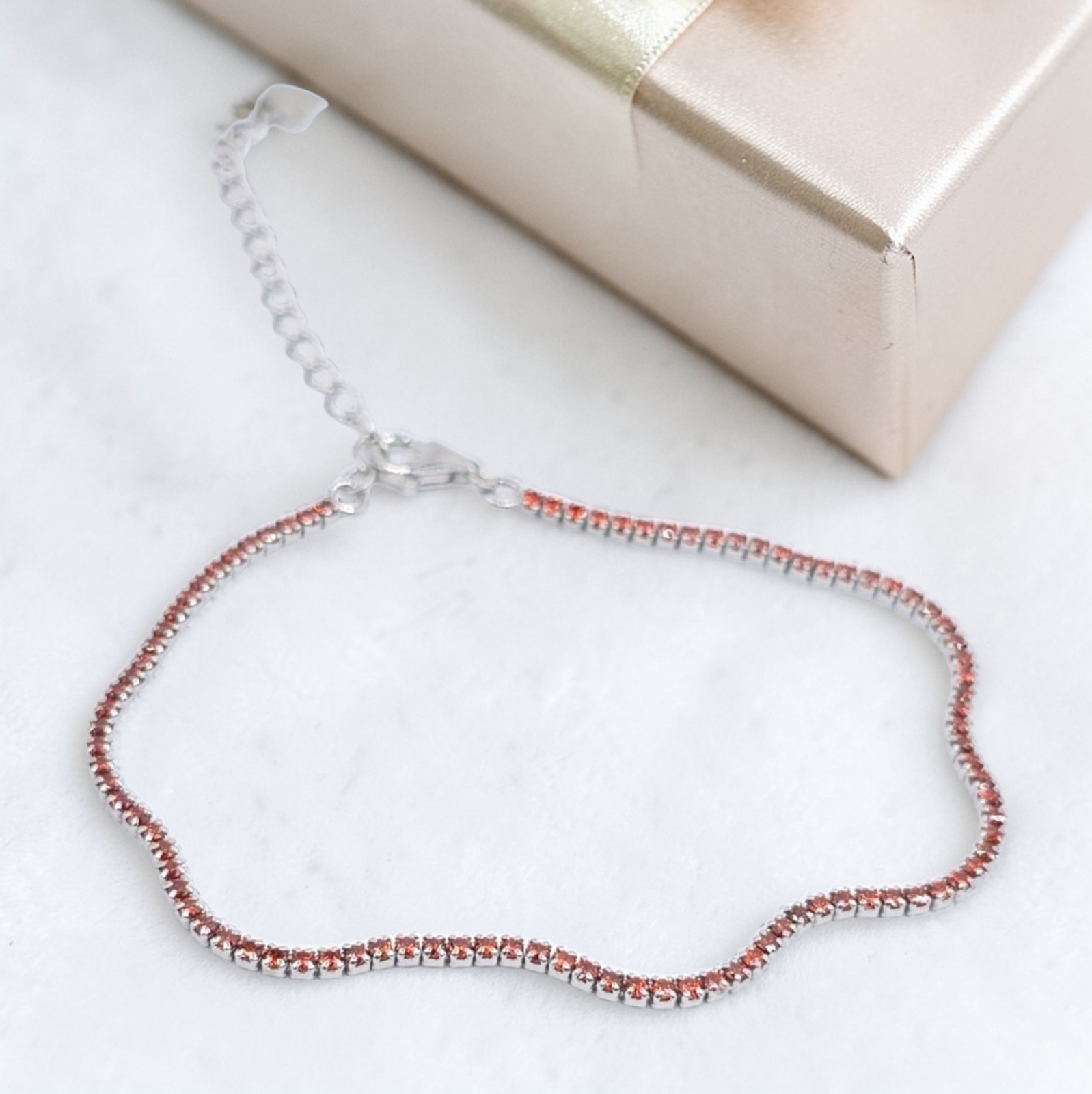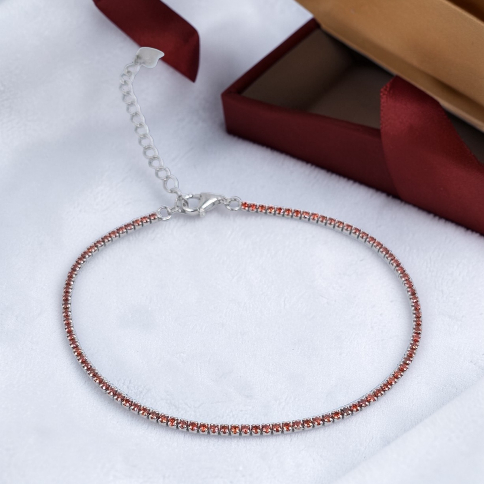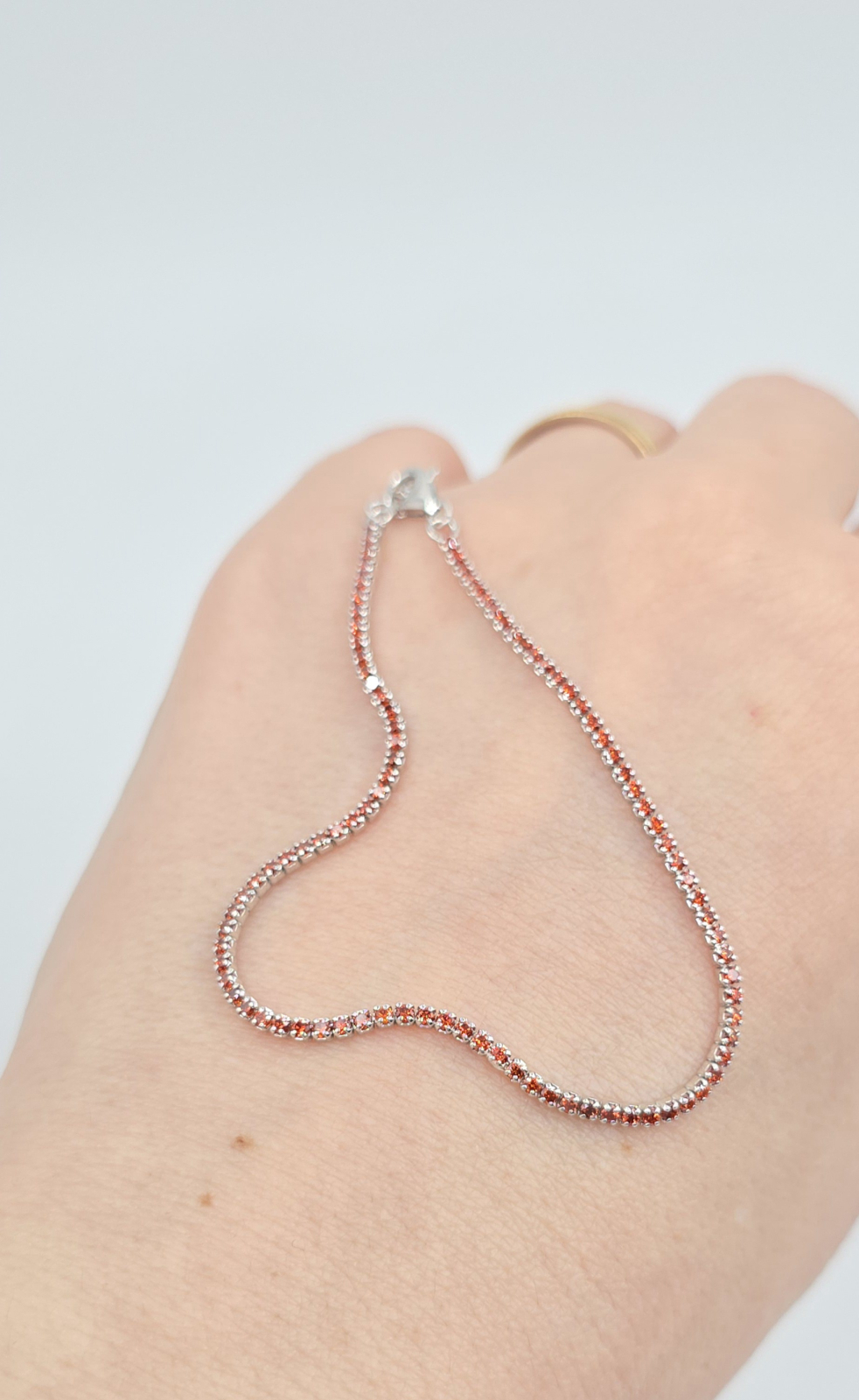 Alege un accesoriu plin de energie și stil cu această brățară din argint 925, realizată în stil tennis, decorată cu pietre fine în nuanțe calde de portocaliu.
