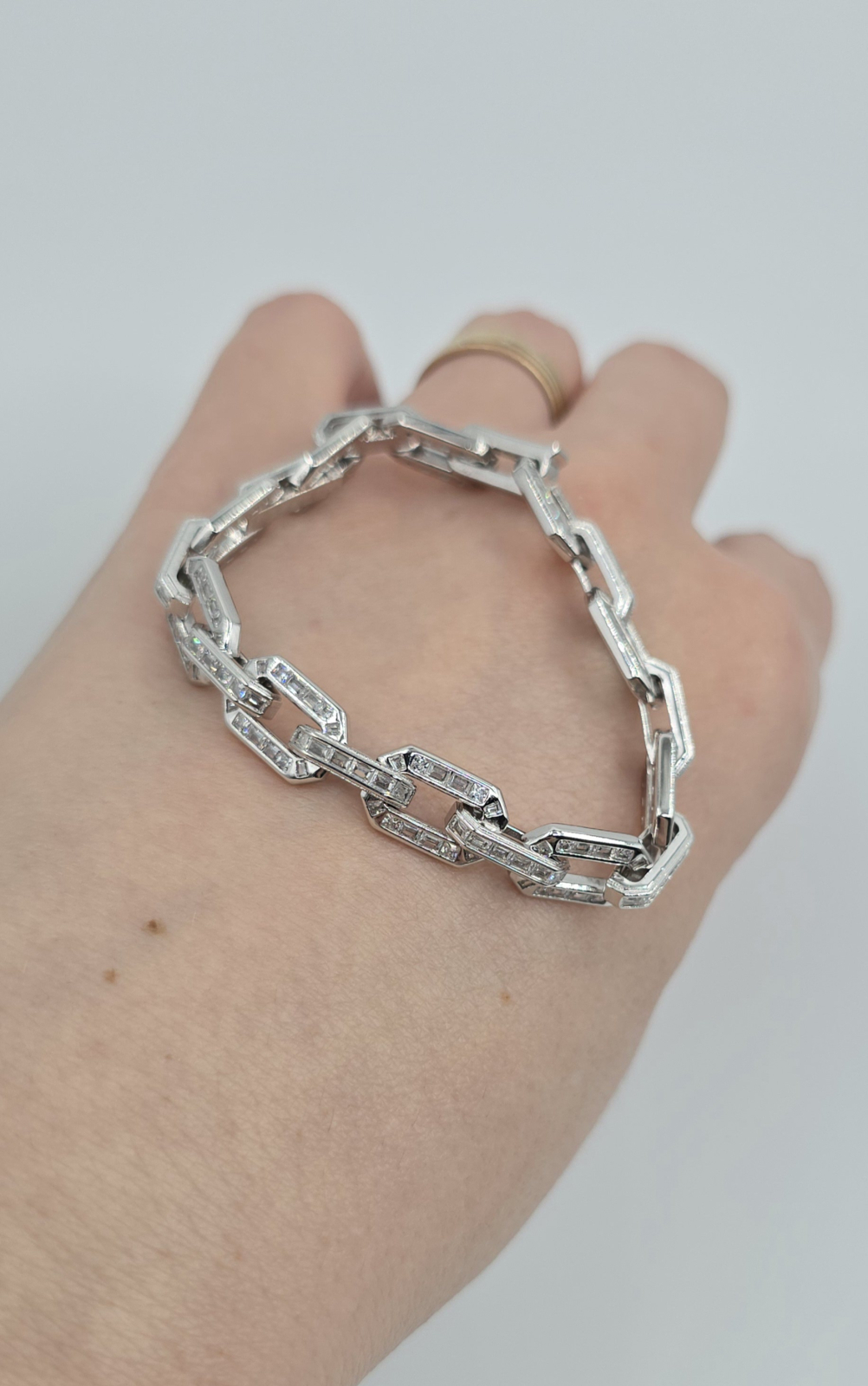 Brățară elegantă din argint 925, decorată cu cristale  transparente, având o lungime de 16.5 cm și o greutate de 17.47 g. Un accesoriu sofisticat și versatil, ideal pentru ocazii speciale sau purtarea zilnică.