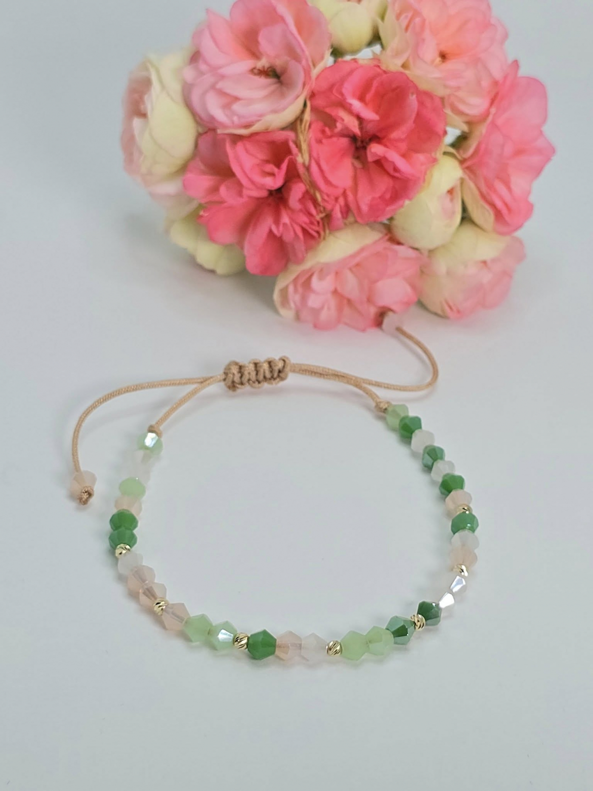 • Specificații: Brățară reglabila cu cristale si bilute din Aur de 14 kt
