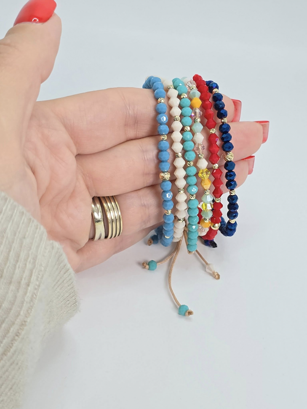 Brățara cu cristale și bilute din aur de 14 kt este o bijuterie care îmbină eleganța cu versatilitatea. Poate fi purtată singură sau în combinație cu alte bijuterii pentru un look mai sofisticat.