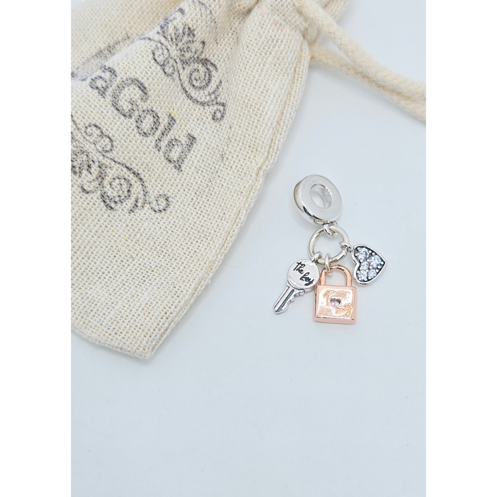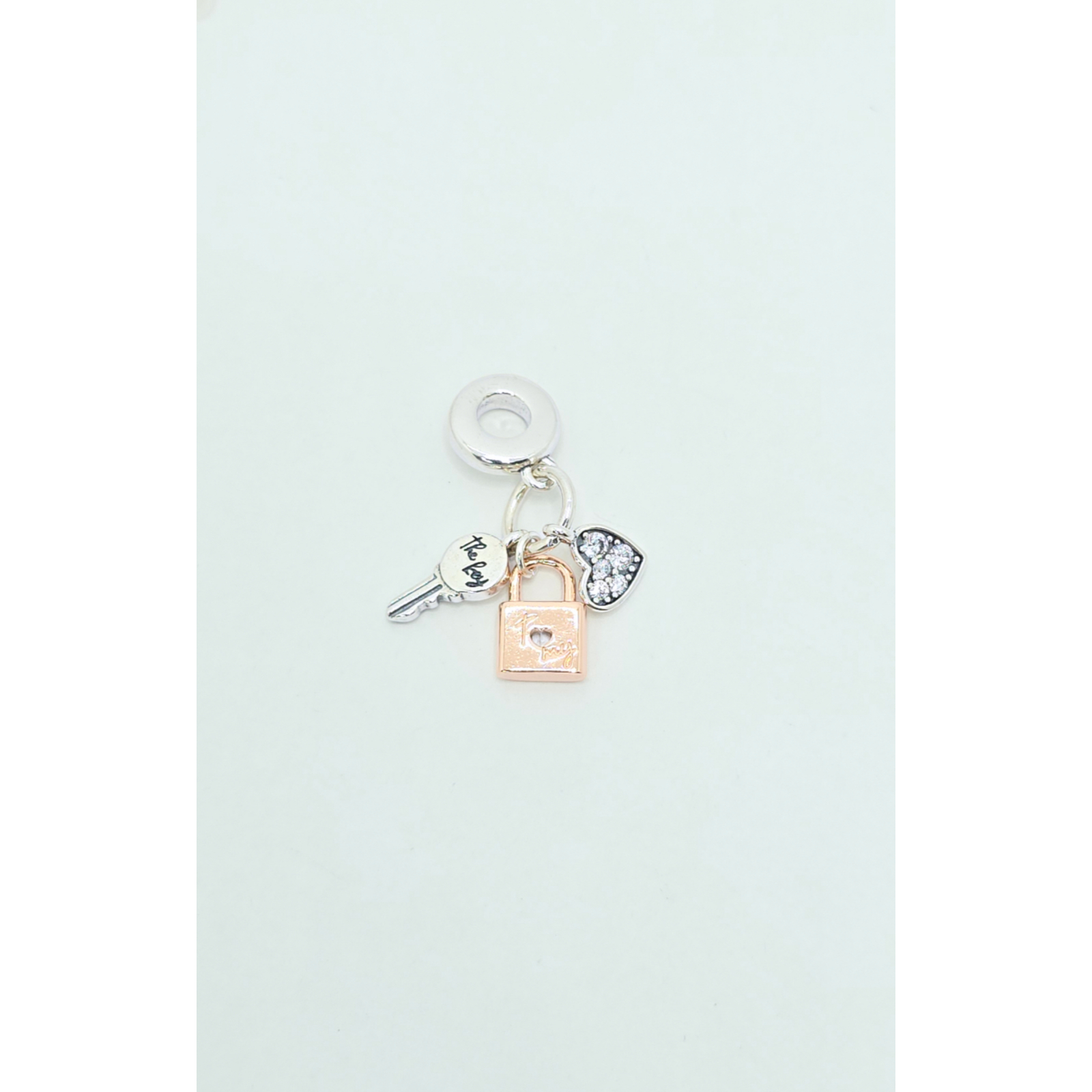 Acest talisman din argint 925 are un design sub formă de inimă, lacăt și cheie, decorat cu cristale zirconia, oferind un simbol puternic al iubirii și încrederii. Este un accesoriu ideal pentru a adăuga un strop de rafinament și semnificație brățării tale cu talismane.