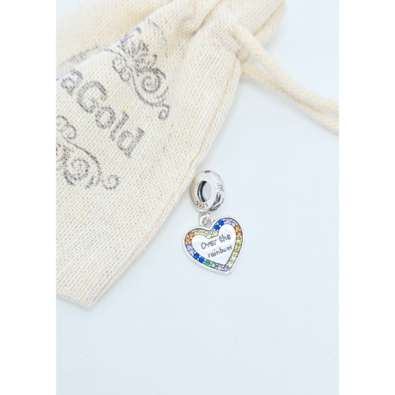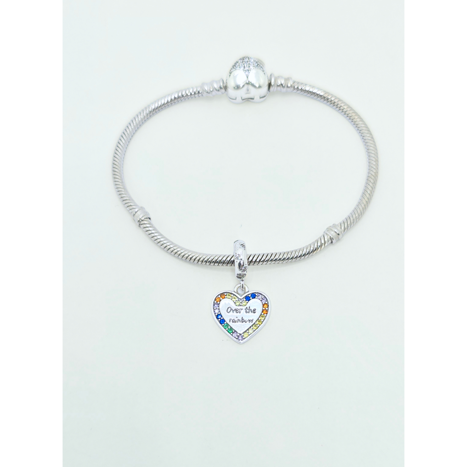 Acest talisman din argint 925 are un design sub formă de inimioară, decorat cu cristale zirconia colorate, oferind un aspect vibrant și vesel, ideal pentru a adăuga un strop de culoare brățării tale cu talismane.
