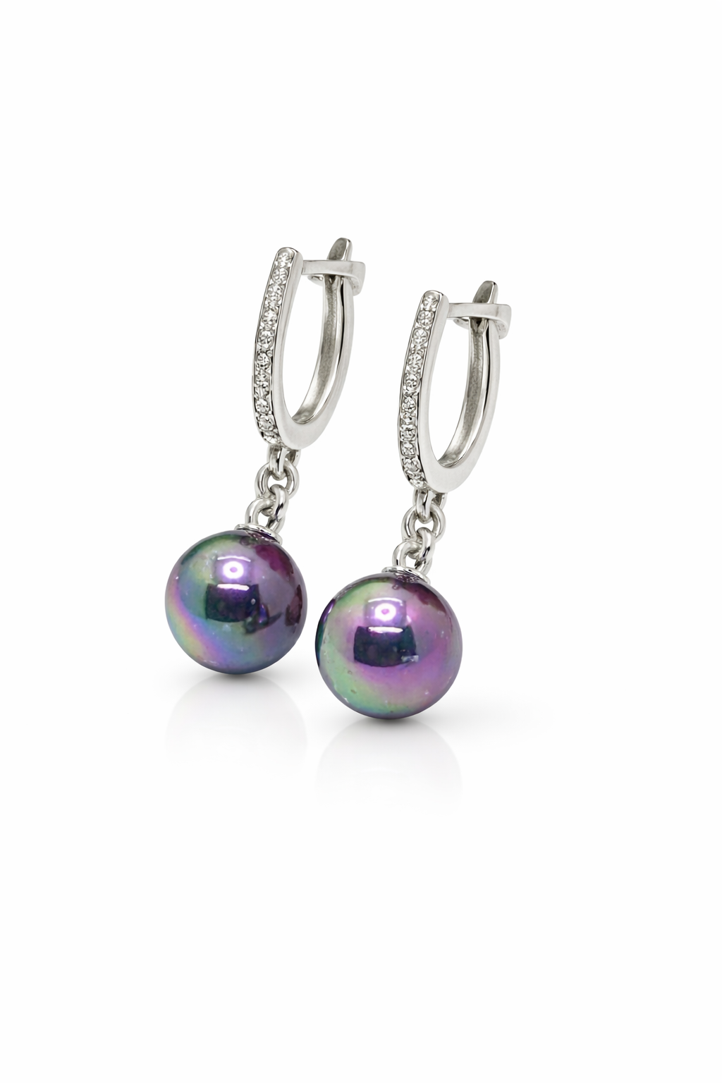 Cercei rafinați din argint 925, creați pentru un look elegant și sofisticat, evidențiați prin perle negre cu luciu intens și accente fine de zirconii.