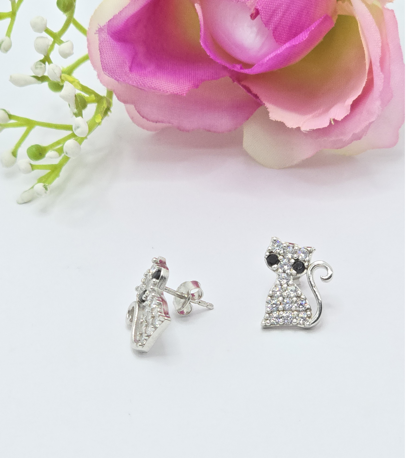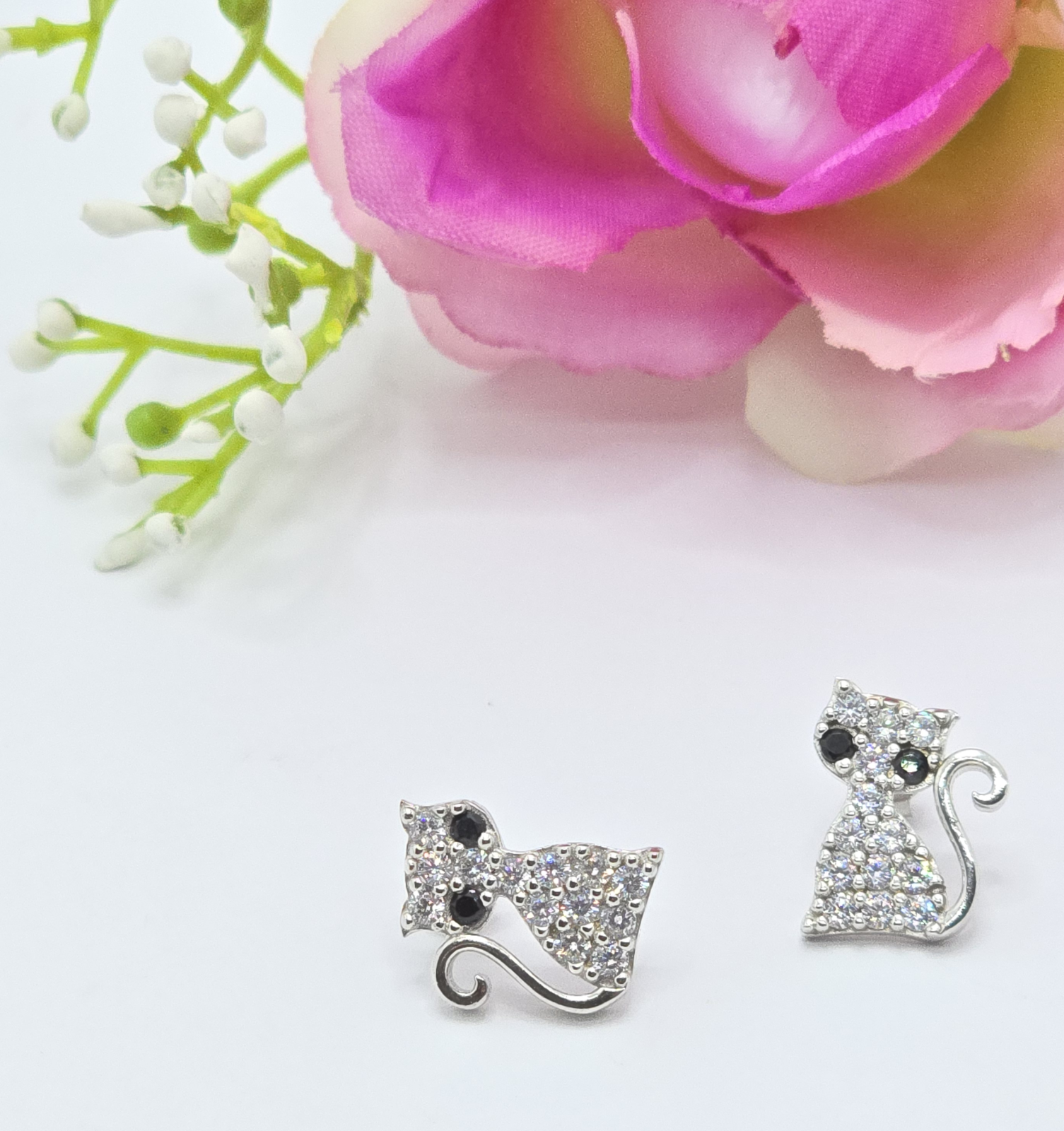 Cercei cu Pisicute din Argint 925 cu Zirconia – 3.14 g, 1.7 cm