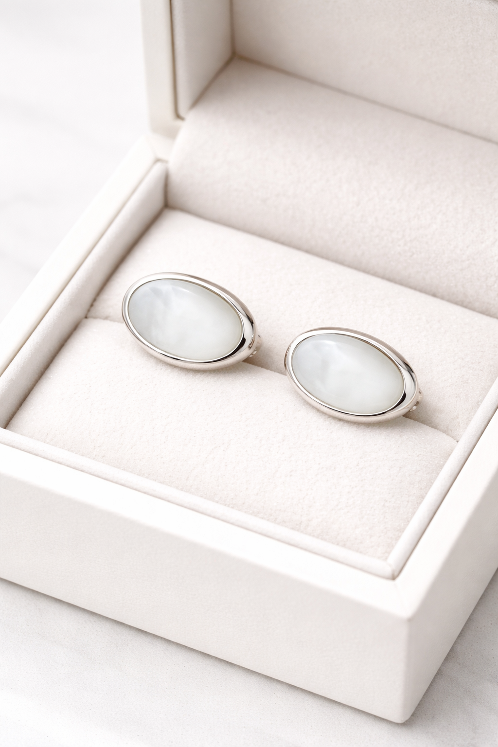 Designul oval, simplu și rafinat, pune în valoare frumusețea naturală a sidefului, fiind ușor de asortat atât la ținute casual, cât și la cele elegante. Dimensiunea compactă îi face comozi pentru purtare zilnică.