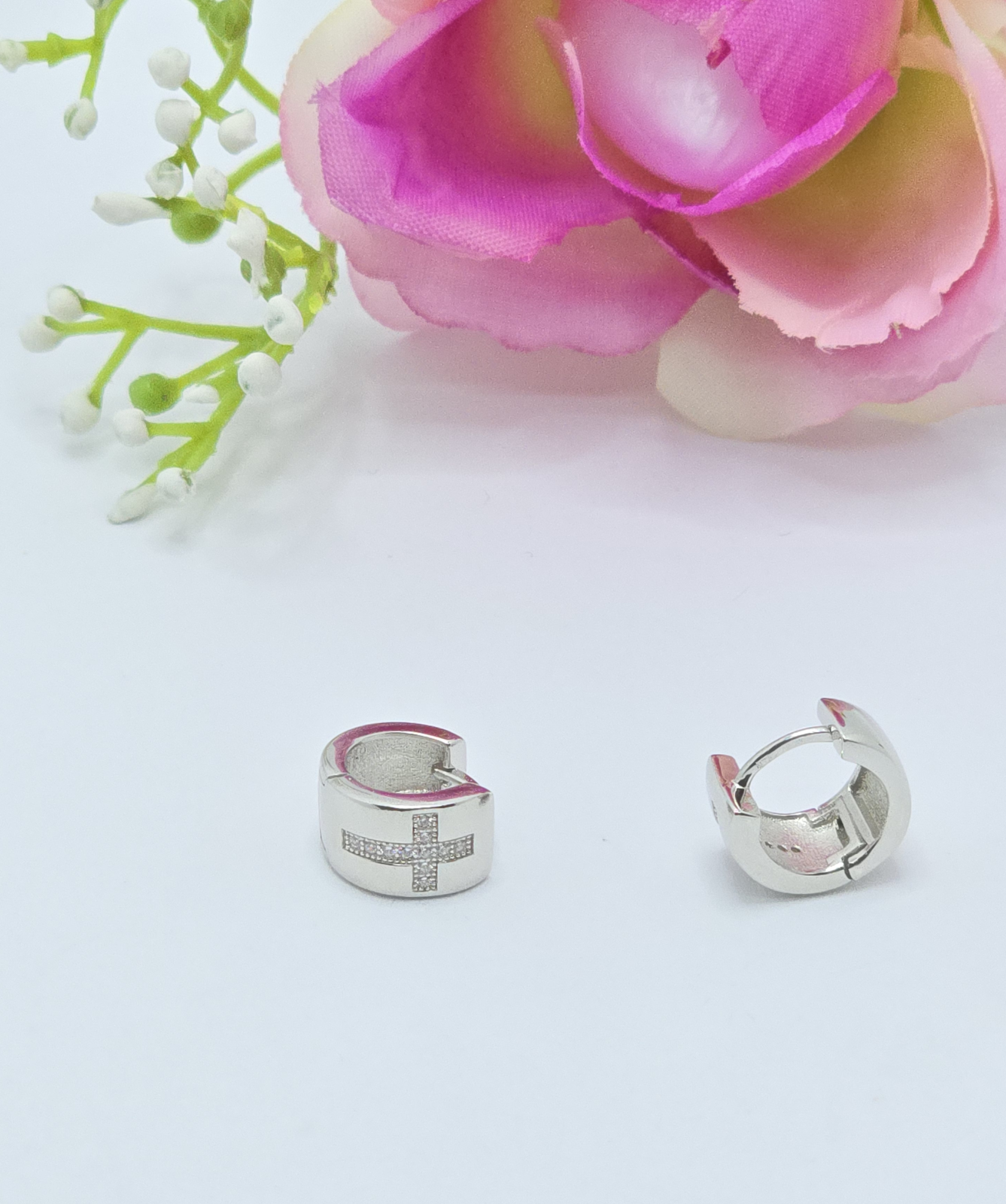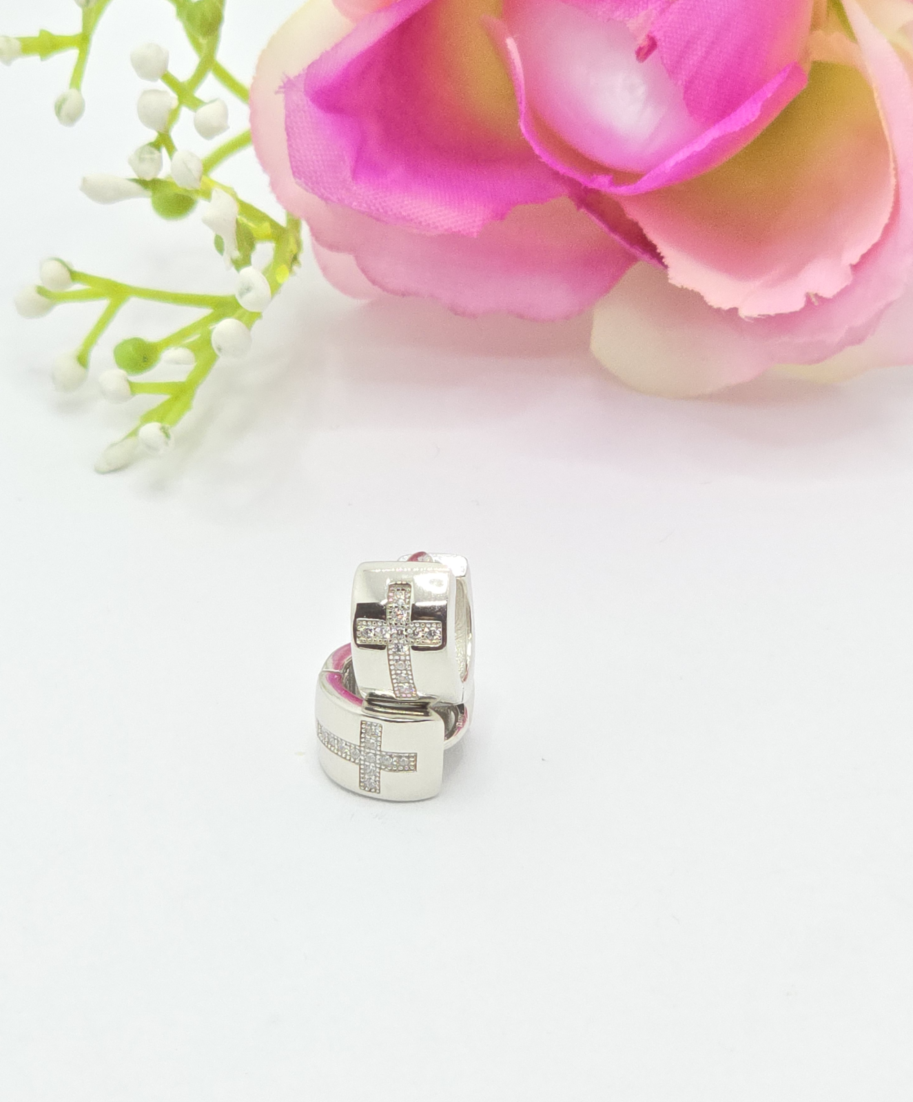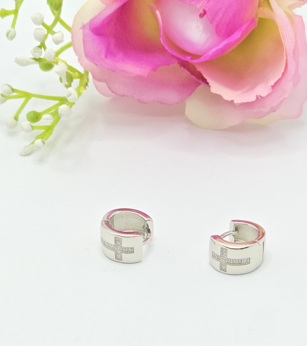 Cercei cu cruce din Argint 925 cu Zirconia – 4.59 g, 1 cm