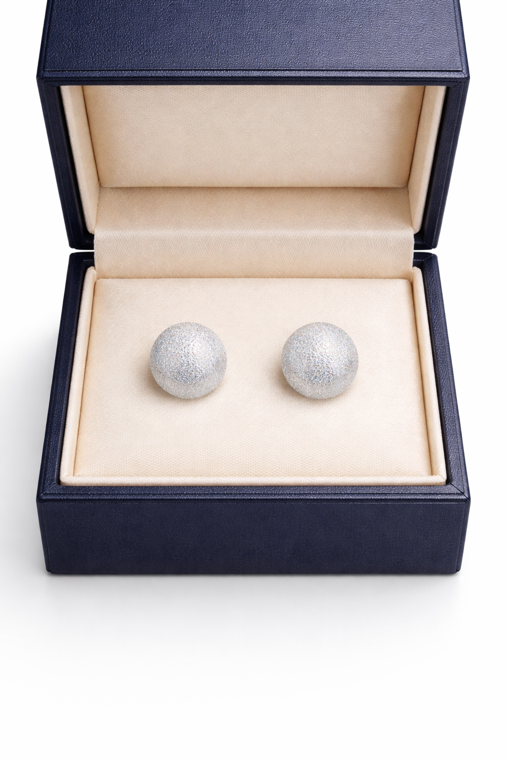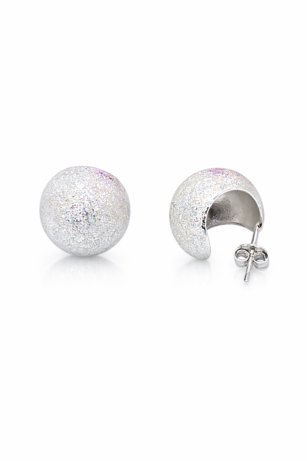 Cercei din argint 925, realizați într-un design simplu și sofisticat, fără pietre, evidențiați prin textura fină și finisajul ușor satinat. Forma de semisferă oferă volum și eleganță, păstrând în același timp un aspect minimalist și rafinat.