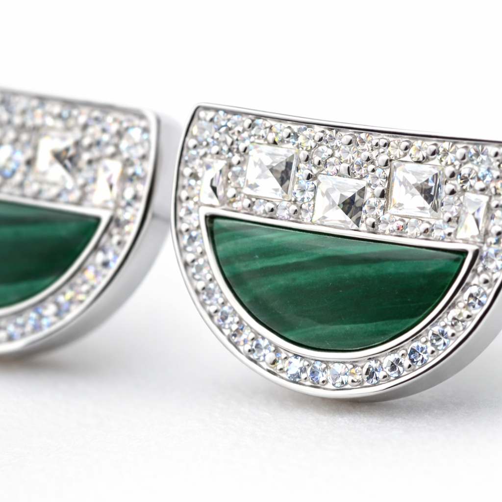 💚 Contrastul dintre verdele profund al malachitului și strălucirea zirconilor creează un accesoriu sofisticat și atrăgător.