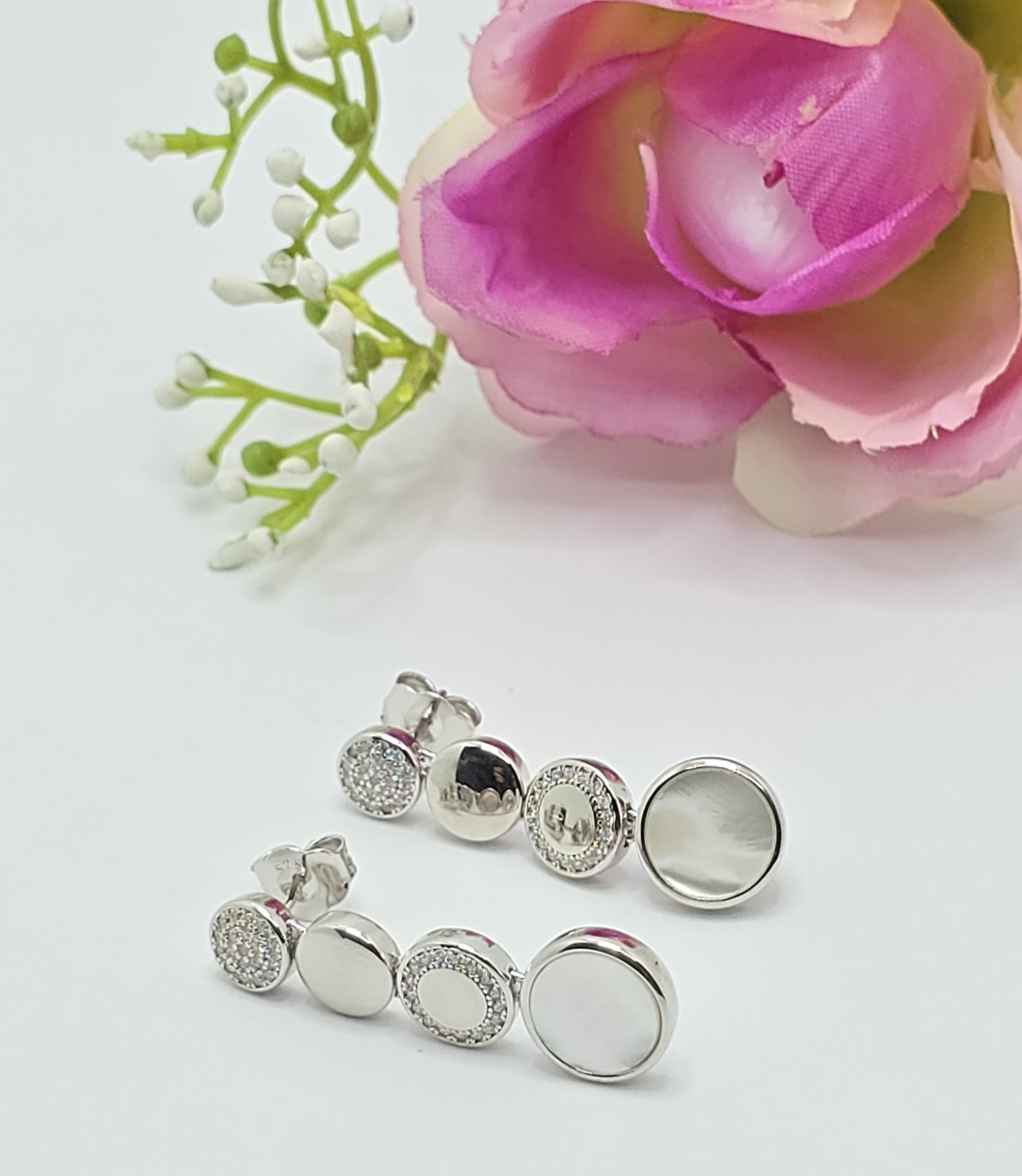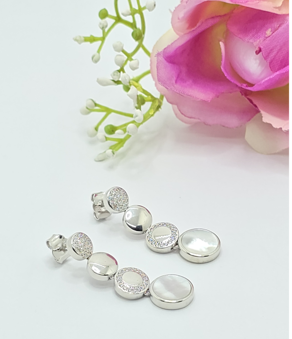 Cercei din argint 925 cu Sidef,având o greutate de 7.07 g și dimensiunea de 3.3 cm. Un accesoriu minunat și strălucitor, perfect pentru orice ocazie. Inchidere surub