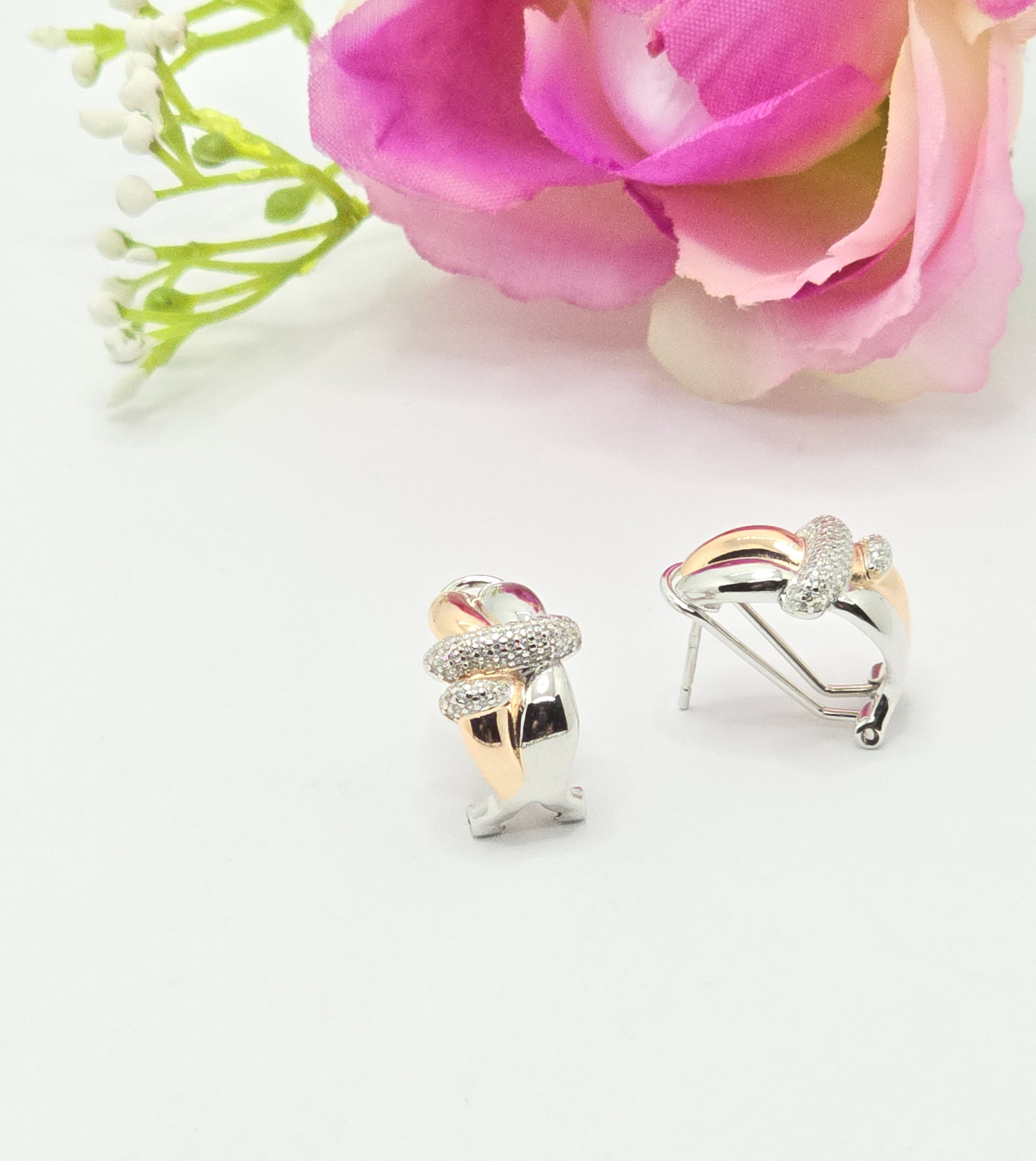 Cercei din argint 925 cu Zirconia ,având o greutate de 4.59 g și dimensiunea de 2 cm. Un accesoriu minunat și strălucitor, perfect pentru orice ocazie.Inchidere clips