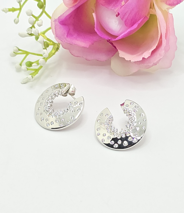 Cercei din argint 925 cu Zirconia ,având o greutate de 9.09 g și dimensiunea de 2.4 cm. Un accesoriu minunat și strălucitor, perfect pentru orice ocazie.Inchidere surub
