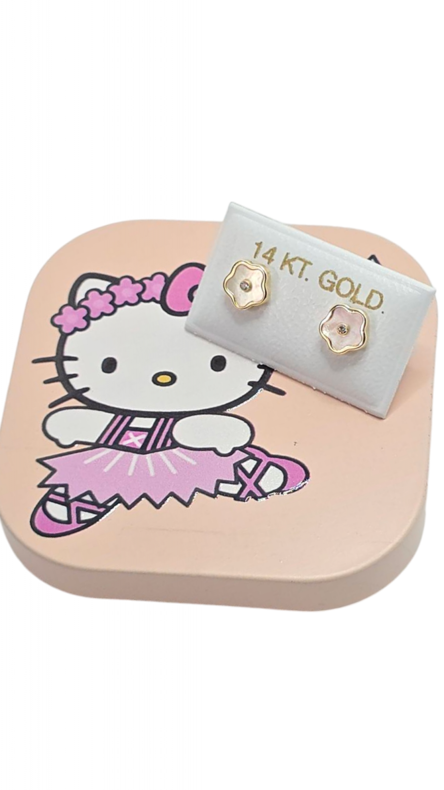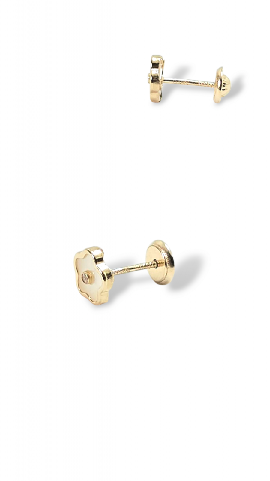 Cercei Bebe cu Floare din Aur galben 14 kt si Sidef