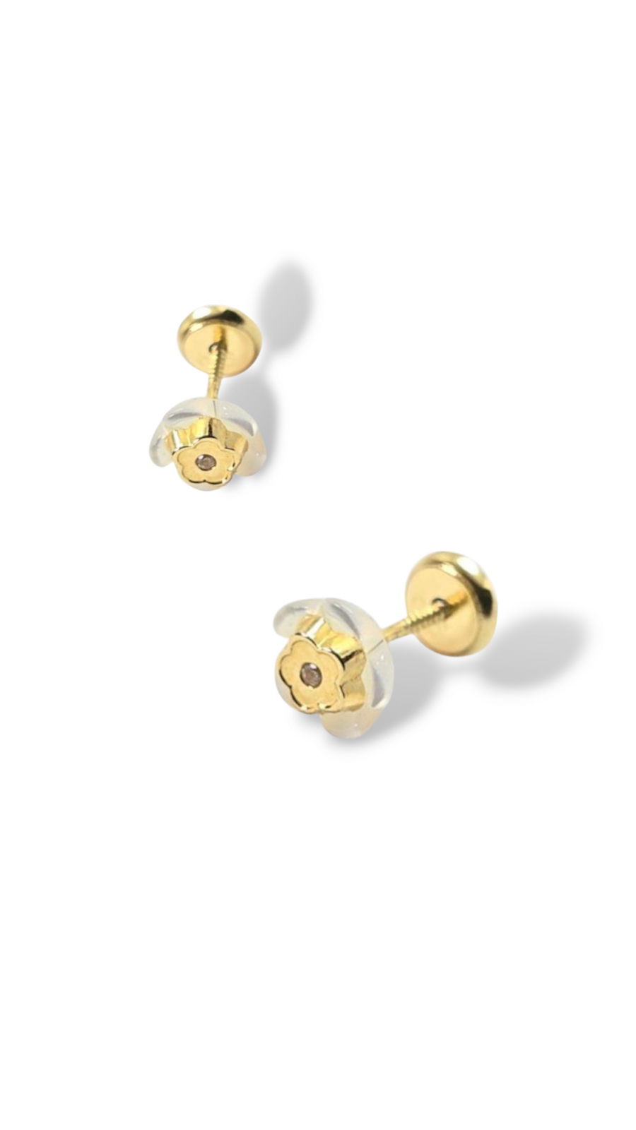 Cercei Bebe cu Floricica din Aur galben 18 Kt si Floricica din Sidef
