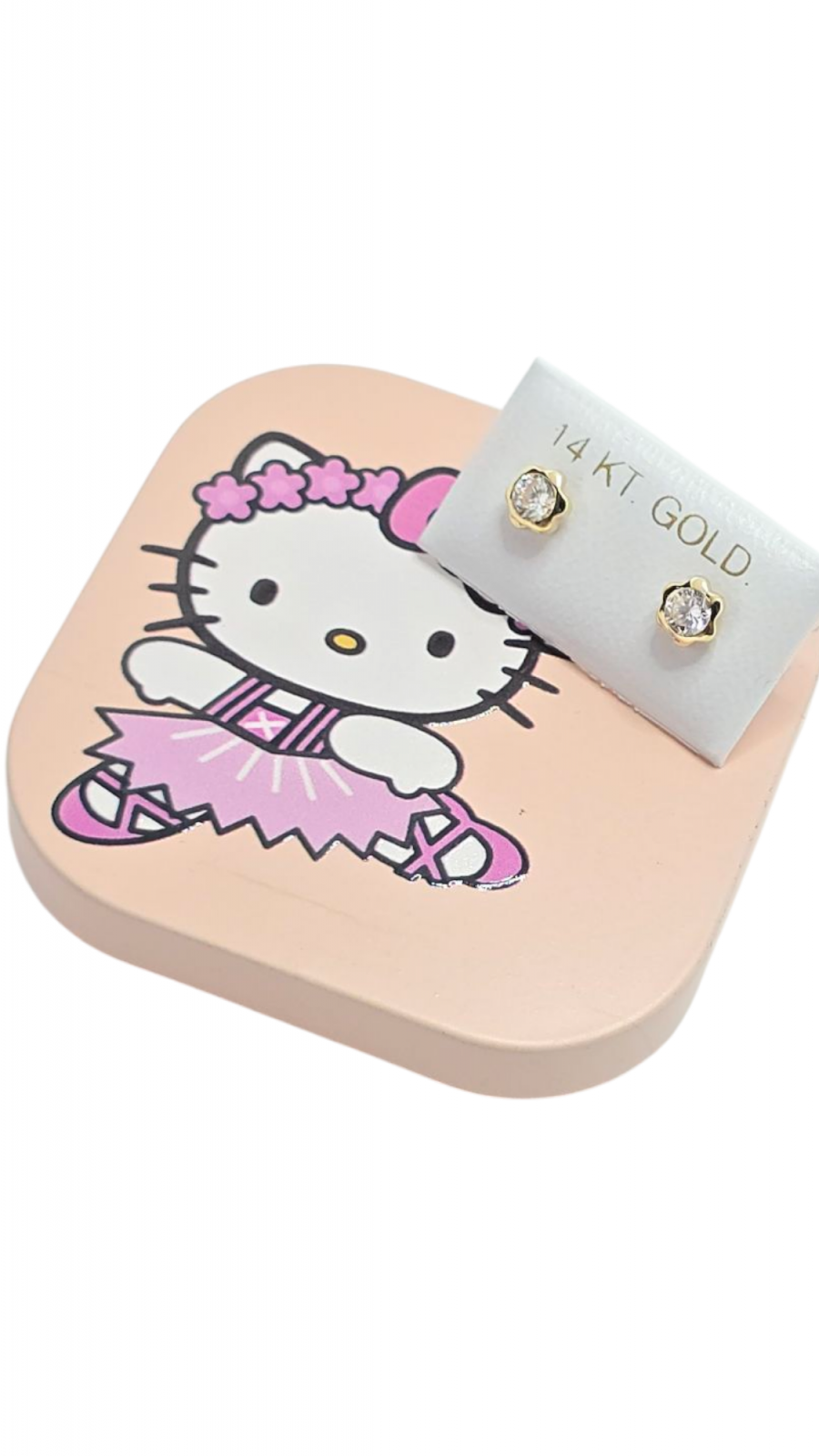Cercei Bebe in forma de floare din Aur galben 14 kt si cristal Zirconia
