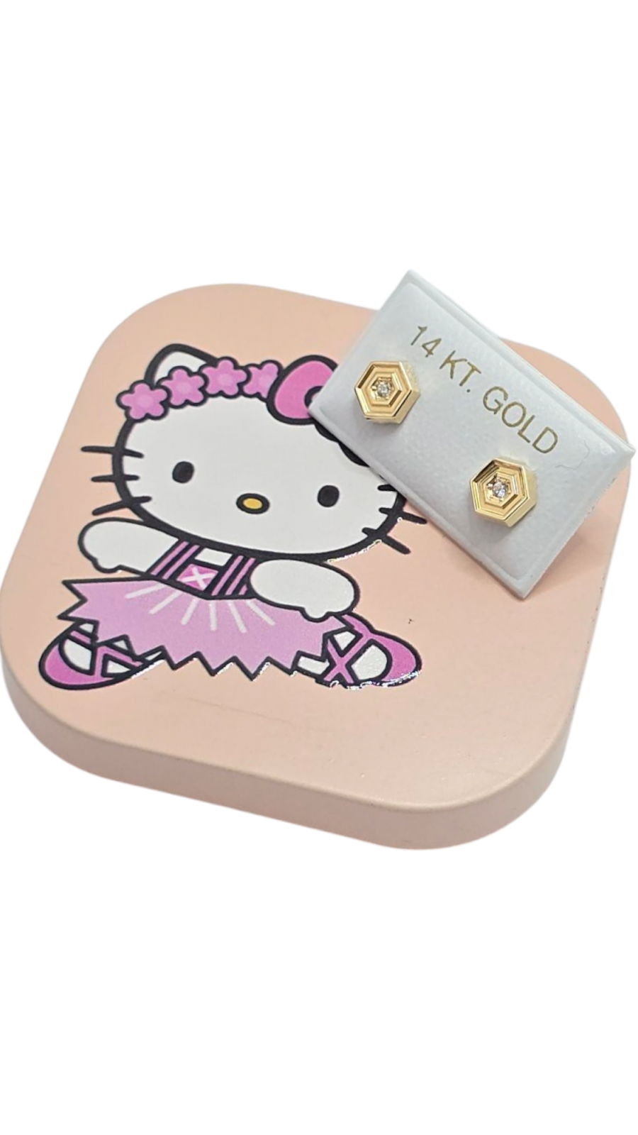 Cercei Bebe in forma de Hexagon din Aur galben 14 kt si Cristal Zirconia