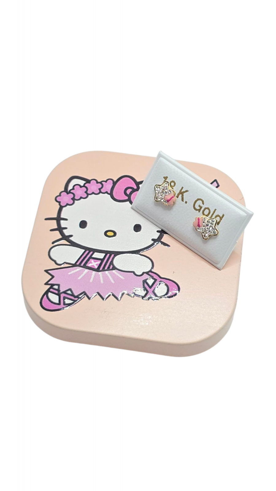 Cercei Bebe in forma de Steluta din Aur Galben 18 kt si Cristale Zirconia