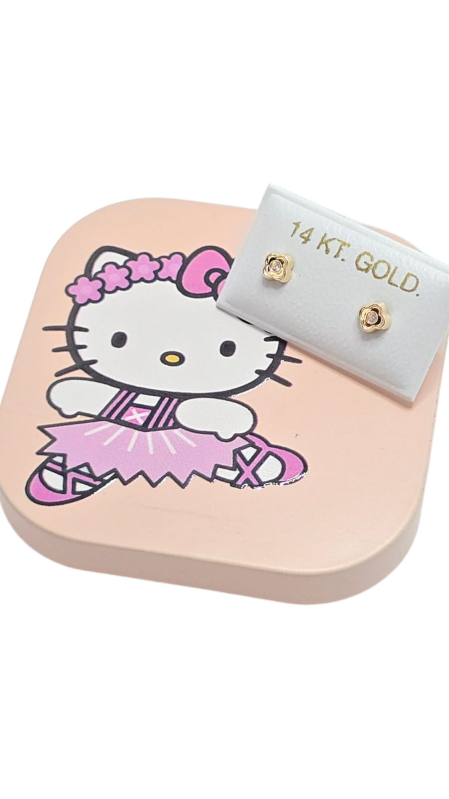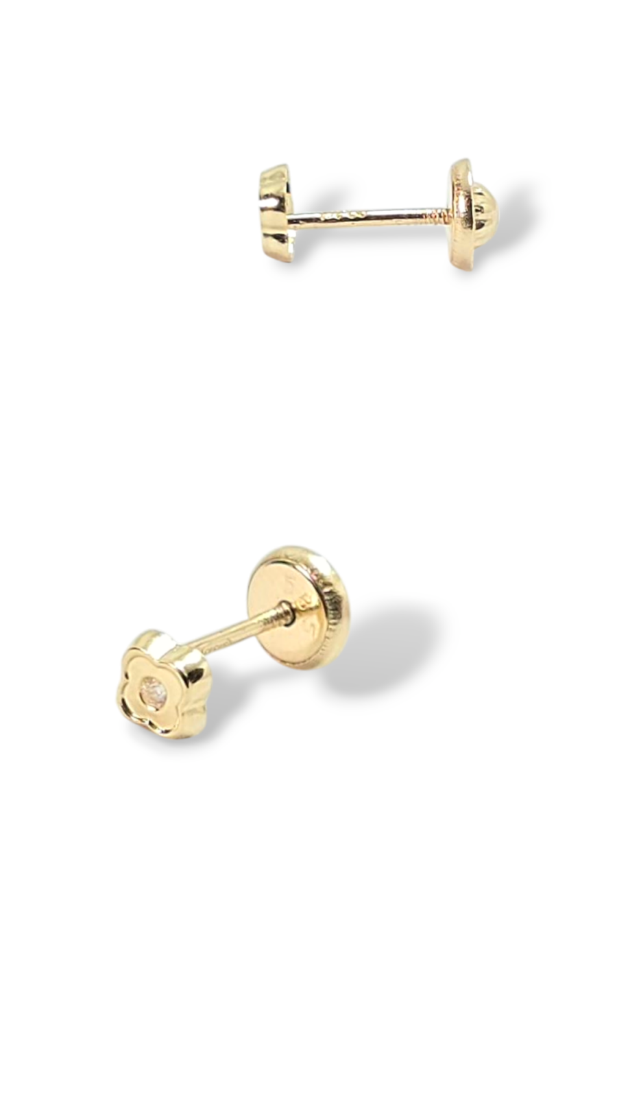 Cercei Bebe in forma de trifoi din Aur galben 14 kt si cristal Zriconia