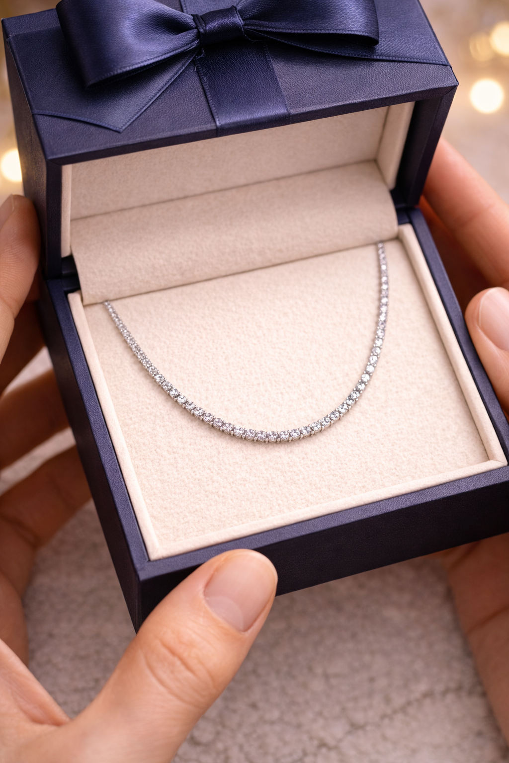 Simplitatea devine spectaculoasă în acest colier tip tennis din argint 925, o piesă atemporală care redefinește eleganța prin detalii fine și strălucire continuă.