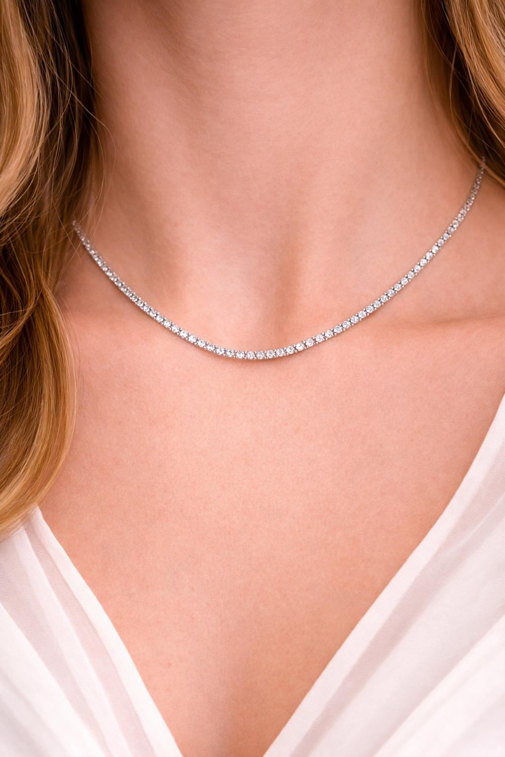 Fiecare zirconiu este atent montat într-o linie perfectă, creând un efect de lumină fluidă care urmărește delicat linia gâtului. Designul minimalist, dar sofisticat, îl transformă într-o bijuterie versatilă – ideală atât pentru ținutele de zi, cât și pentru aparițiile speciale.