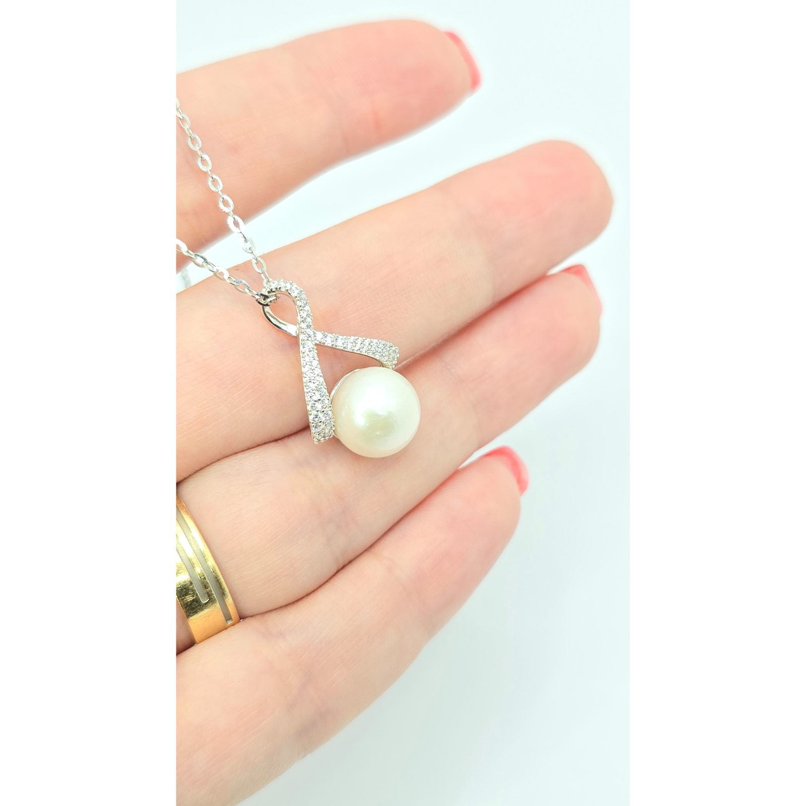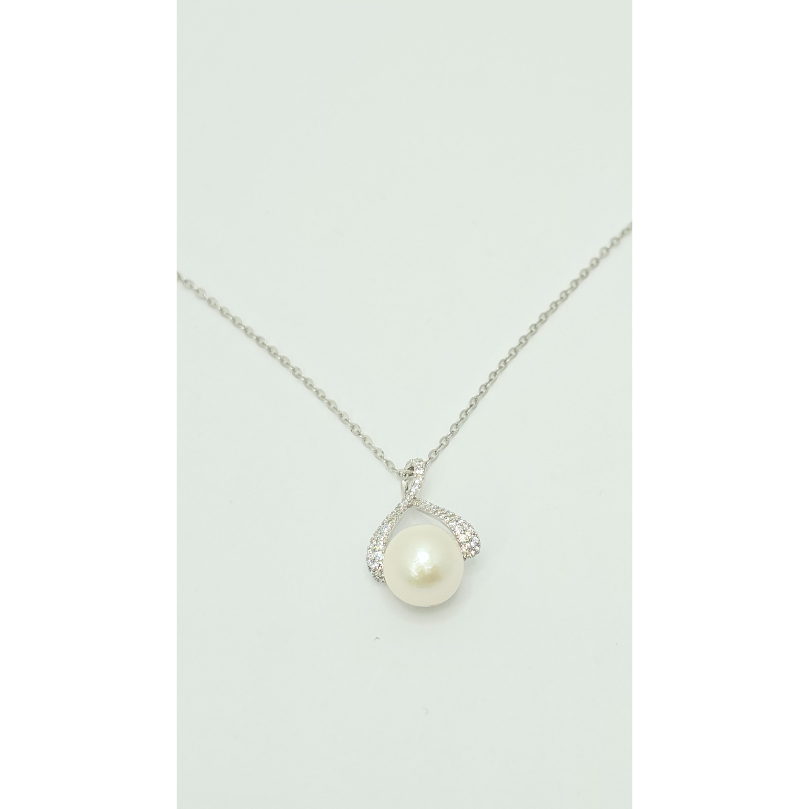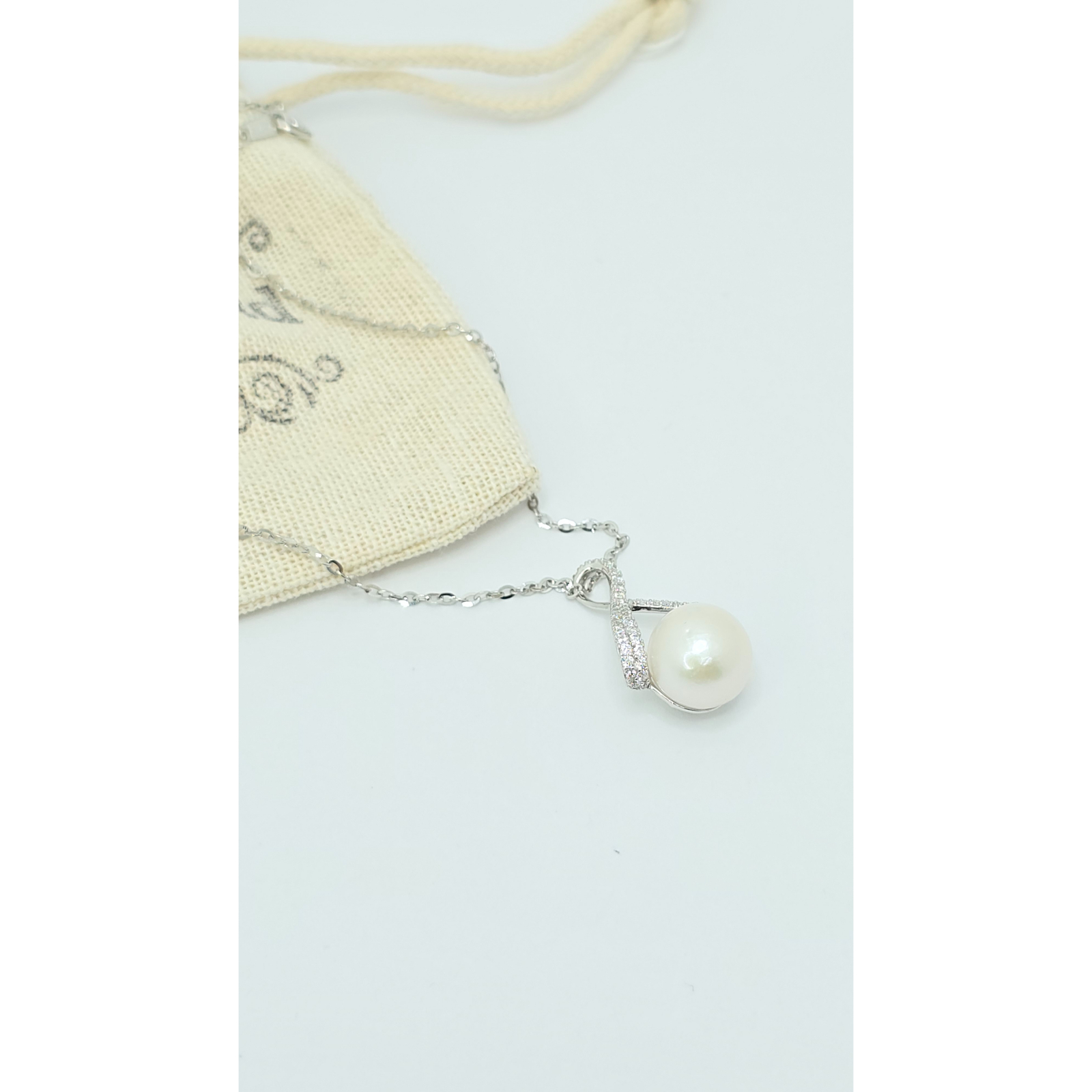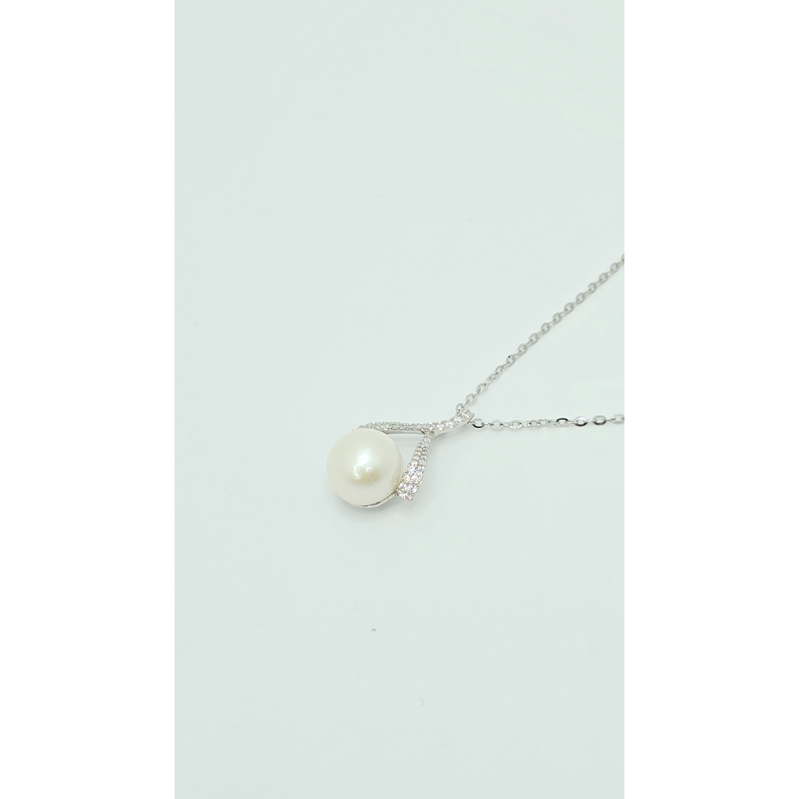 Acest lanț din argint 925 este decorat cu o perlă naturală și cristale zirconia, oferind un aspect rafinat și clasic, ideal pentru a adăuga un strop de eleganță oricărei ținute.