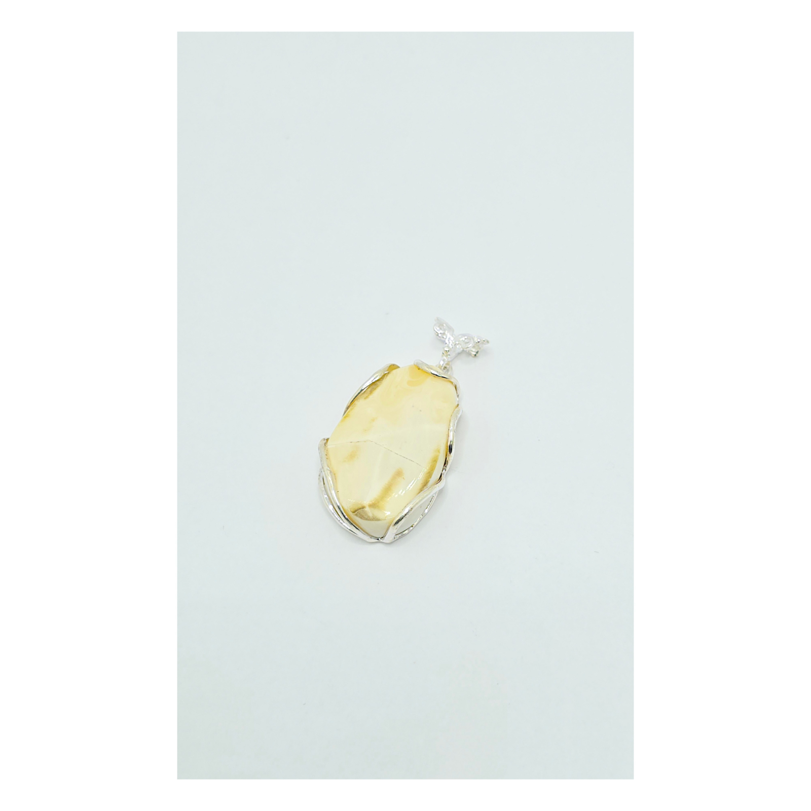 Medalion din argint 925 decorat cu piatra semiprețioasă chihlimbar, având o greutate totală de 9.80 g și dimensiuni de 4 cm x 2 cm. Un accesoriu elegant și natural, perfect pentru a adăuga un strop de rafinament oricărui stil.