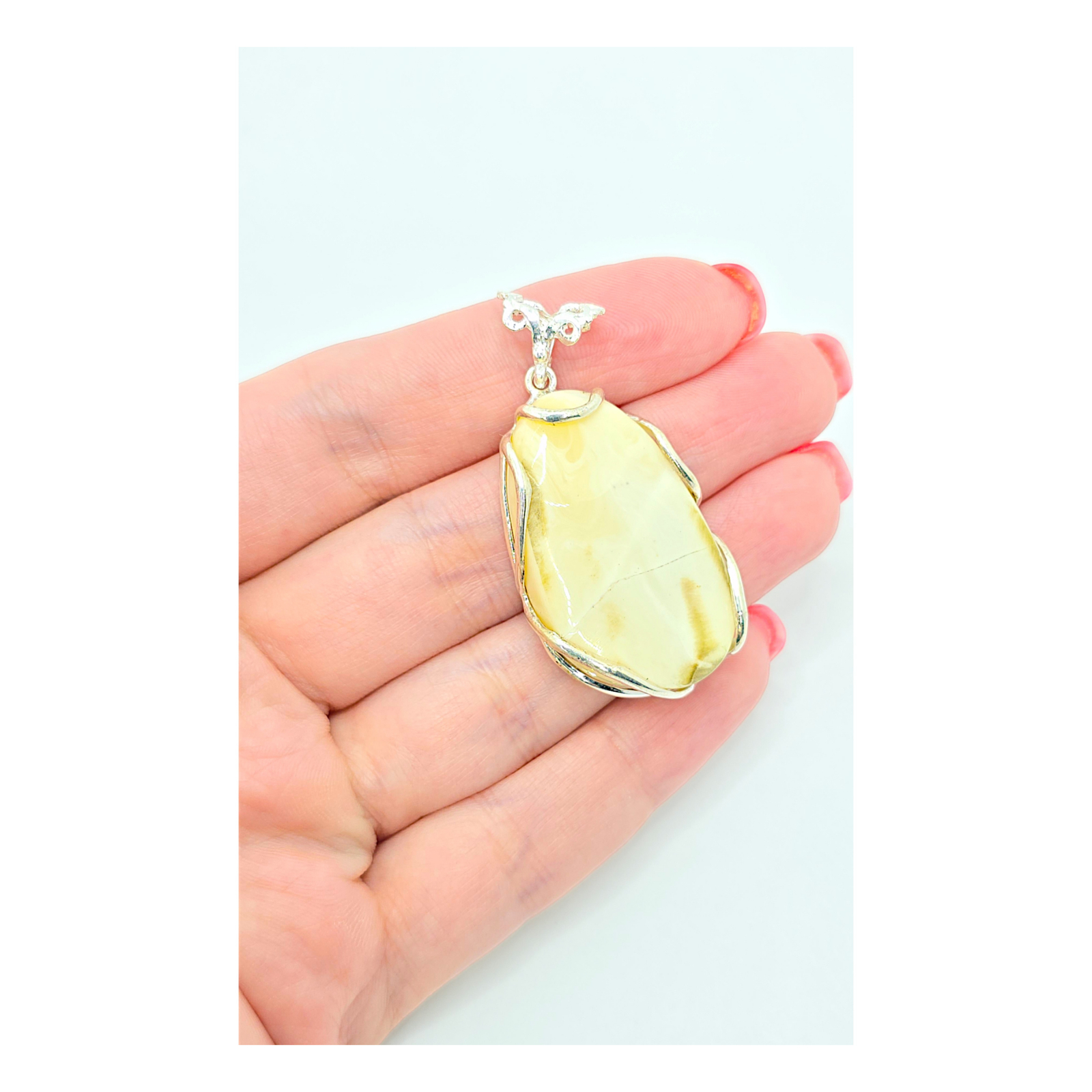 Acest medalion din argint 925 este decorat cu piatra semiprețioasă chihlimbar, oferind un design rafinat și natural, perfect pentru a adăuga un strop de căldură și rafinament ținutelor tale.
