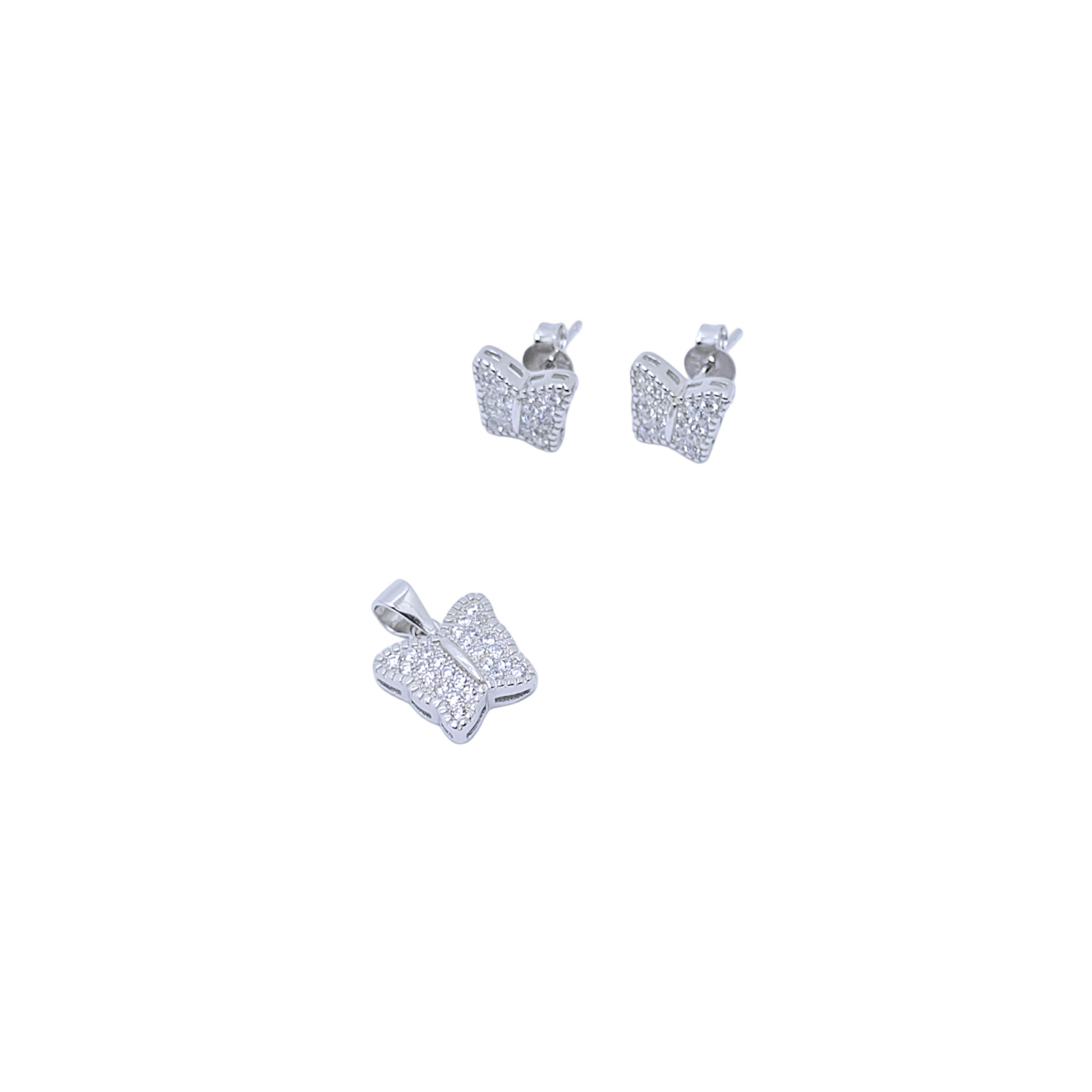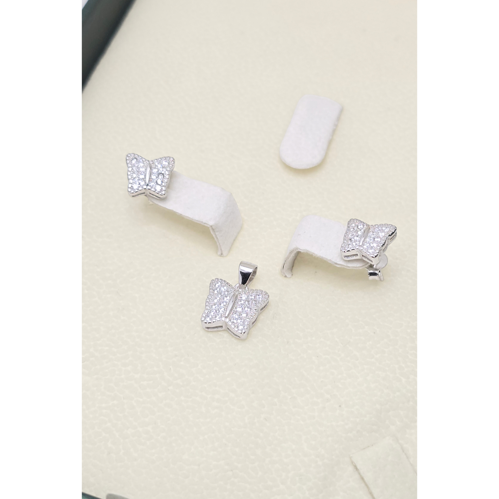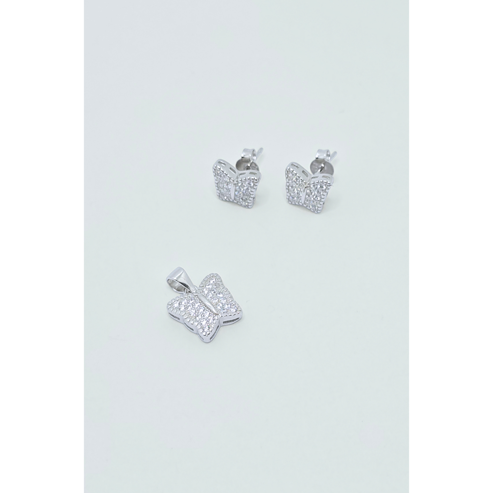 Acest set din argint 925, compus din cercei și medalion, este decorat cu cristale zirconia și are un design delicat în formă de fluturaș, ideal pentru a adăuga un strop de eleganță și rafinament oricărei ținute.